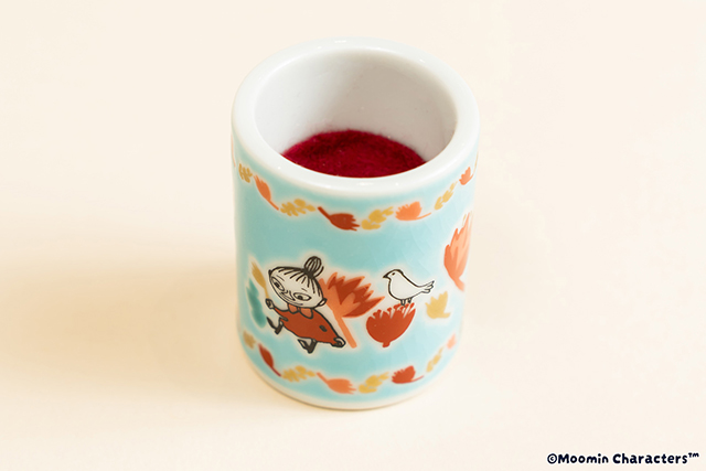 リトルミイフェアのアートをあしらったマグカップ。内側にもさりげないポイントがあり、飲んでいる時間も楽しめます。